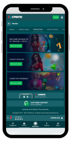 I've analyzed and tested 22casino, giving it a rating of 87 out of 100 and an good reputation.
