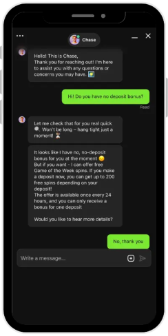 Spillere kan kontakte support via Live Chat og e-mail. Live Chat indeholder en flersproget bot og rigtige agenter, og e-mailsupport svarer typisk inden for 30 minutter. Der er også en detaljeret FAQ-sektion på siden.