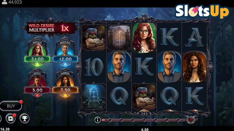 Gratis spins: De fire figurer har hver deres tilbud om gratis spins. Normalt får du gratis spins, når du lander tre eller flere scatters på samme spin. Men i dette spil får du mulighed for at vælge mellem fire forskellige gratis spins. De er Sarah, Troy, Amber og Wild Desire Free Spins. For hver funktion får du 12 spins og multiplikatorer. For Wild Desire vil det dog øge gevinstlinjerne fra 243 til 1024 måder at vinde på.