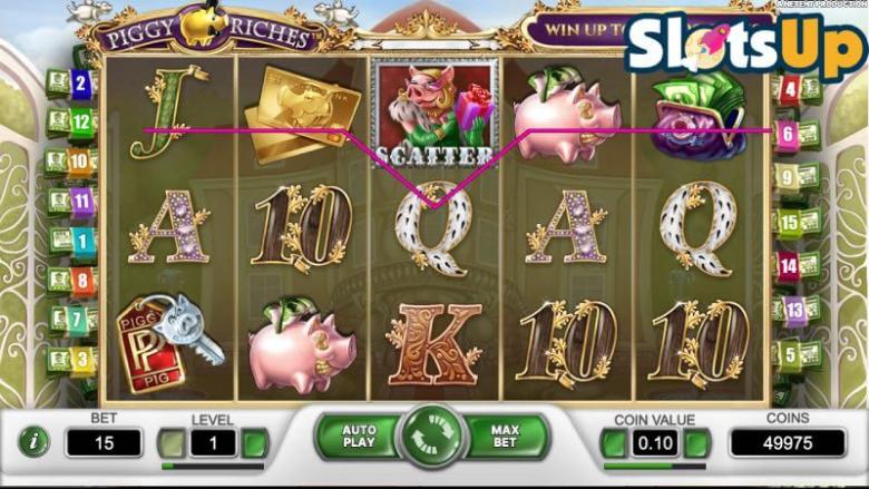 Piggy Riches har en struktur med 5 hjul, 3 rækker og 15 gevinstlinjer. For at opnå en vindende kombination skal du lande 3, 4 eller 5 matchende symboler på en af de 15 gevinstlinjer i grundspillet, bortset fra rigdomssymbolet, som kun kræver to i kombination med en Piggy Riches RTP på 96,38%, hvilket er højere end de fleste spilleautomater leveret af NetEnt. Denne RTP, kombineret med høj volatilitet, genererer et godt gevinstpotentiale.